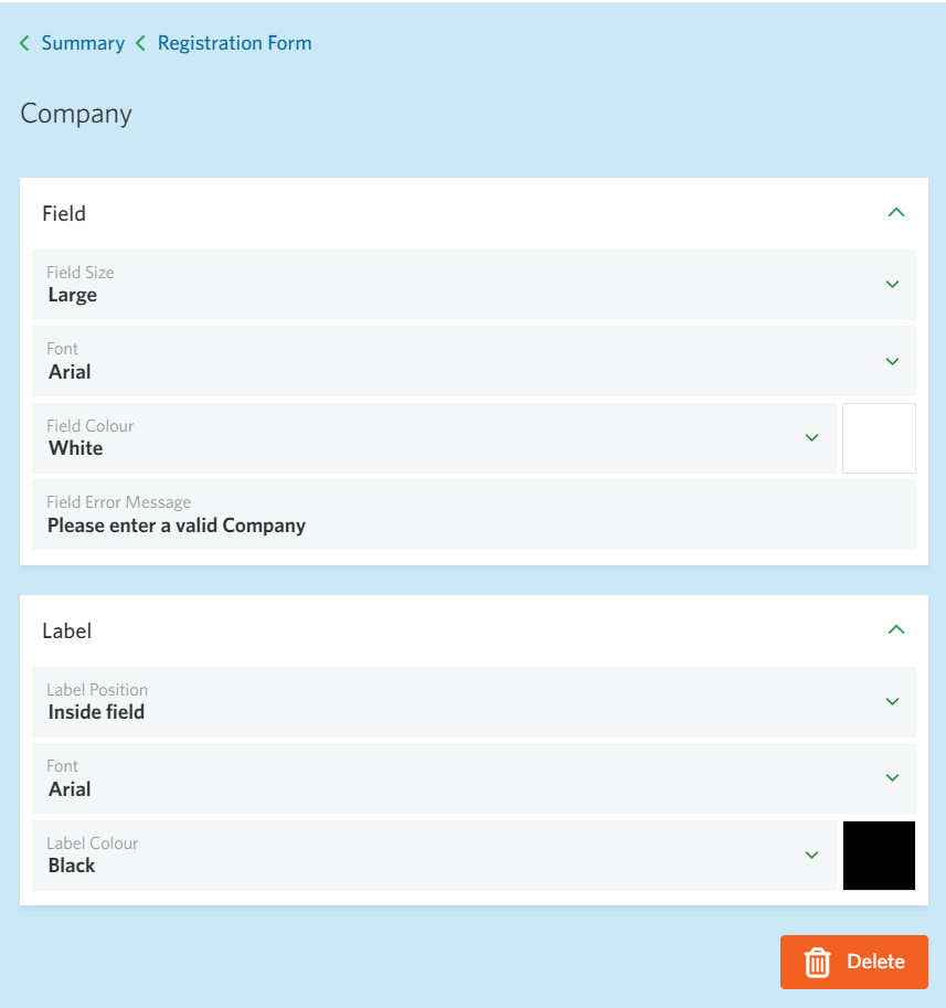 Each field has properties. Just click on the field and you’ll see you can change the field size, font colors, error message and label position. To remove a field, just hit Delete at the bottom (don’t worry, you can add it again later).