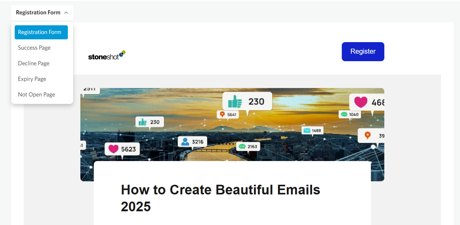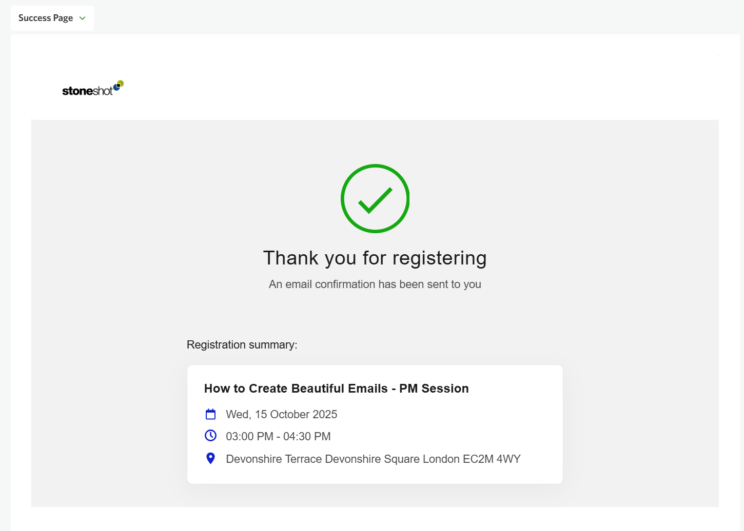 StoneShot Learning > Event Marketing > Creating a Registration Form